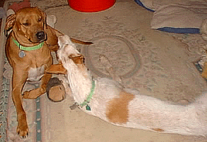 | Astro is 6 1/2 months old & Kito is 11 3/4 months old in this picture taken on 11/4/99. |