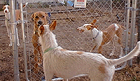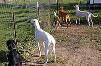 | Here is Astro, Mugabe, Madja, Frosty & Cody looking out the fence at a rabbit running out in the field. |
