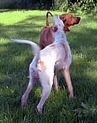 | Astro is telling Mugabe a secret. His tail is wagging in excitement to tell someone what he knew. "WE" all know that Astro "CAN'T" keep a secret! |