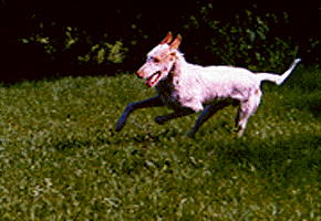 | Here is Astro 14 1/2 months old chasing a rabbit in the yard. |