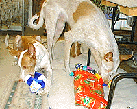 | Astro is wondering what Santa brought him. |