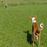 | Chaos has spotted a rabbit (or cat) moving in the field. |