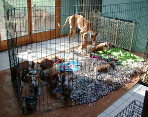 Deanna watching her pups in the xpen. |