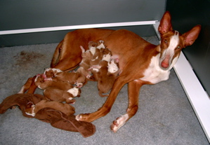 Deanna and her kids just after Betty was born. All of the puppies have wonderful parents waiting to take them home in a few weeks. They have all picked their new additions RHPS name, but until I know whom will be best with who, they all will have the "I Love Lucy" theme names. |