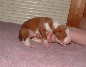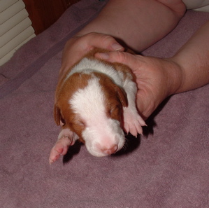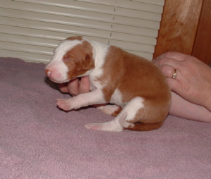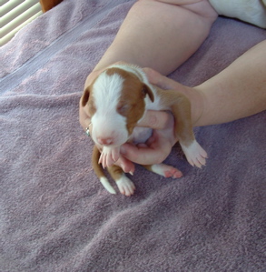 This is Betty's show side, handler side, and head shot at 1 week of age.
