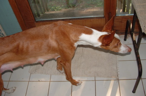 Here is Deanna watching as I get one of her pups for pictures and first nail clipping!
