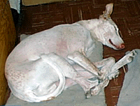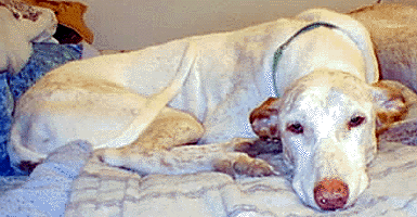 | Frosty had a hard day watching over the puppies. At 10 years of age, he gets tired quicker then they do! |