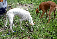 | Here are Frosty & Kito tracking where they seen baby bunnies running from the nest. |