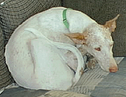 | Here is Frosty at 9 years of age curled up on the couch watching tv! |