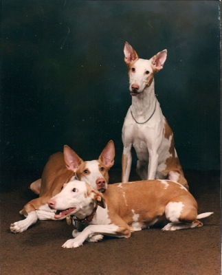 Sitting is Ch. Davight's Aspen De Wishsong, others might be his parents: Onlyone Eliza and Jamjar’s Ricki Ti Tiki. |
