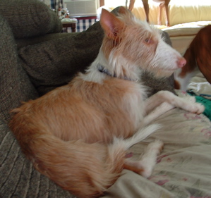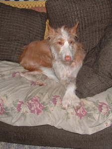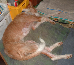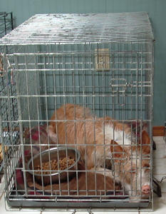 Jojo laying pretty with her legs crossed. Jojo was chewing on the box until I left to get the camera to take this picture. Jojo always has a pig nose when she is in her crate. Jojo seems to always worry about something. Jojo asleep on a pillow in my computer room. Go Back To Page 1.