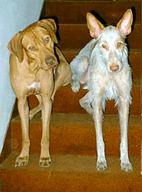 | Kito & Astro sitting on the attic steps. |