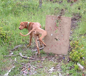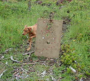 Kito is hiding behind a blind used for target pratice. |