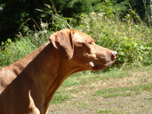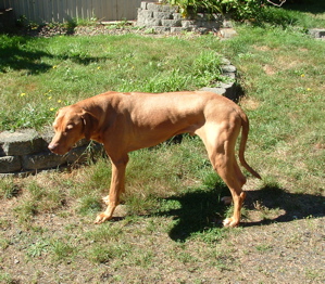 Kito is bored, but enjoying the sun. A typical Ridgeback, loves sun & heat, hates rain & cold. |