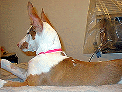 | Madja is staring at herself in the mirror wondering who is that beautiful Ibizan looking back at her. |