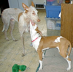 | Madja is 16 1/2 weeks here. Astro is 11 months. (We are ignoring Kito's fat head on the bottom of the picture.) |