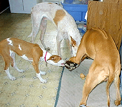 | Here are Cody, Mugabe & Astro running to see what Madja was looking at. |