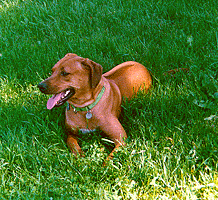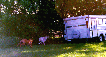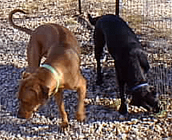 | "I'll look over here & you look over there Cody (the black Lab), I'm sure that rabbit is running around here some where!" |