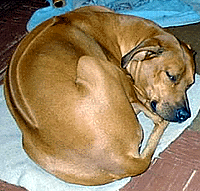 | Here is Mooman resting after a hard day of play on his 4th birthday. |