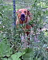 | Moo is hiding behind the fence. Doesn't he look scary if someone came up to him? Little do they know that he would nudge them for pets & hugs! |