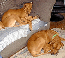| Mugabe seem to look depressed that he can't lay on the couch instead of Kito. |