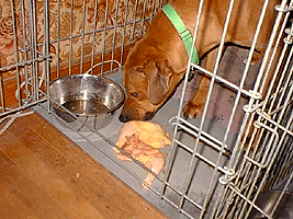 | Mugabe does eat raw chicken as part of his B.A.R.F. (Bones And Raw Foods) diet! |