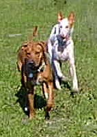 Here is the back ends of Moo, Madja & Frosty running towards the field in our backyard! |
