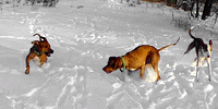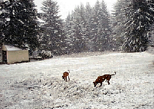 | Here is Moo & Kito playing in the snow with Chaos joining in with the fun! |