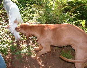 Kito is celebrating his birthday with Moo in a field, on a old logging road, by our house. |