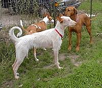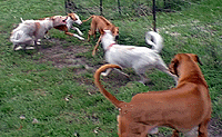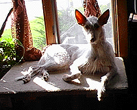 Here is Phoenix (aka: Phinny) in our backyard. She joined our family on September 3, 2001. Here is Phinny unimpressed by Madja & Bobo. A action shot of dogs at play in the yard. Astro is about to catch Madja, who is chasing Oni, who is about to be caught by Phinny, with Moo about to be bodyslammed by them all! Here is Uncle Frosty (11 years old) with his niece, Phoenix (2 1/2 years old). His mother is her grandmother. Phinny quickly discovered the grooming table is a great place to sun herself! Phinny also discovered the waterbed! I just asked Phinny to get off the bed. She how she listened to me! Phinny is getting bord with having her picture taken. Mama! Enough already! (She is giving me a dirty look!) Go To Page 3